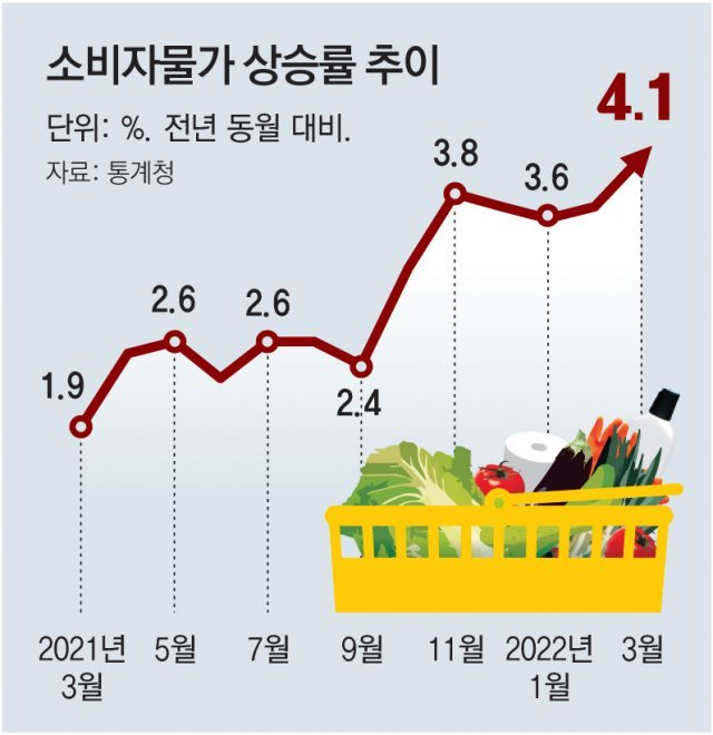 소비자 물가 상승이 경제 성장률을 넘어서는 상황이 2년 동안 계속되고 있다. 즉 소비 여력이 줄어서 내수 경기가 위축된다는 것이다. 장바구니 물가는 더 가파르게 증가하고 있다.