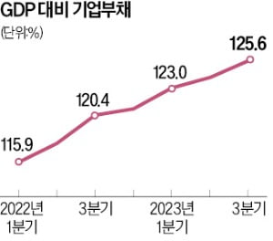 기업부채는 1년 내 갚아야 할 단기부채가 897조가 넘어섰다. 총 부채는 GDP 대비 125.6% 로 외환위기 이후 최고이다.
