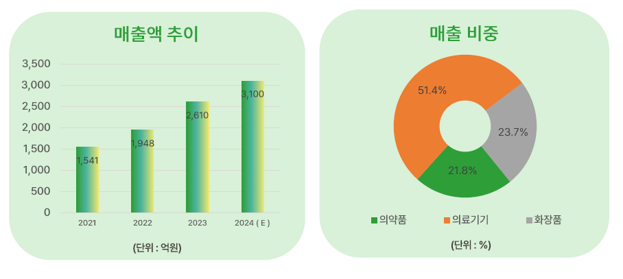 - 의료기기 부문은 2024년에 18.3% 성장한 1,643억원으로 전망