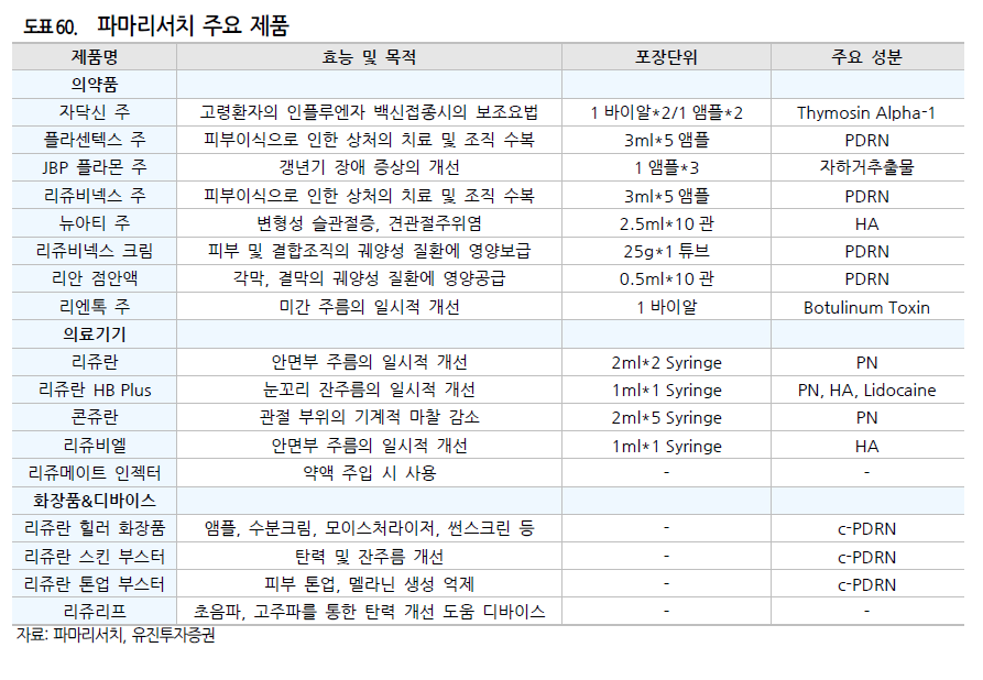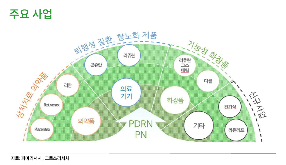- 주요제품: 리쥬란 힐러 코스메틱, 리쥬란 스킨 부스터, 리쥬란 톤업 부스터, 리쥬리프