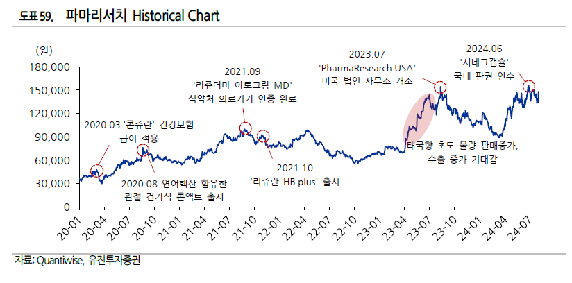 - 24년 2분기 의약품 부문이 27.2% 성장한 171억 원으로 추정되고, 내수와 수출 모두 고성장