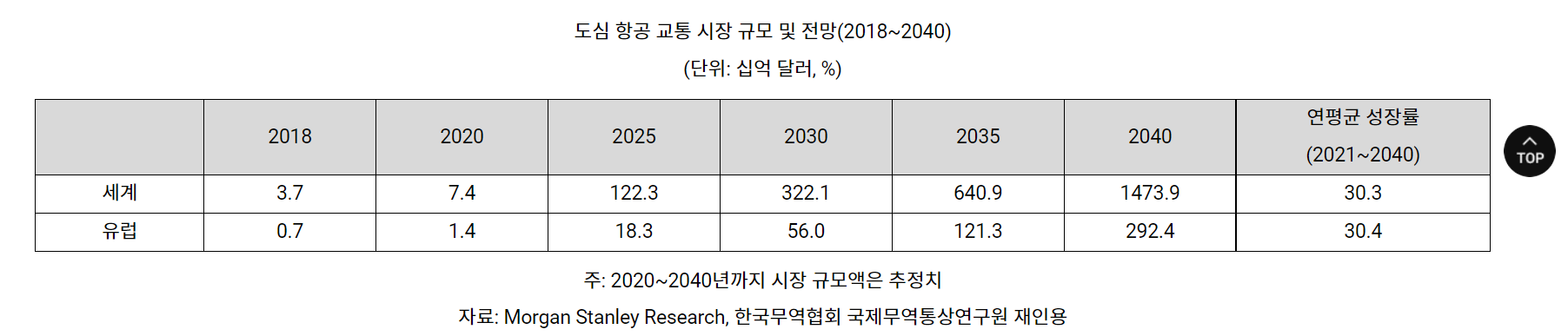 eVTOL 산업의 시장 규모 및 전망