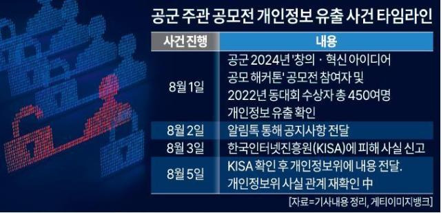 - 2022년 대회 수상자와 올해 대회 접수자 등 총 450여명의 개인정보가 유출