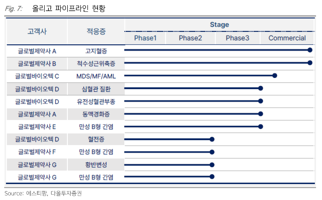 - 올리고핵산 치료제 분야에서 글로벌 3위의 생산능력을 보유하고 있으며, 2026년까지 생산능력을 두 배로 확대 시, 글로벌 1위로 도약할 가능성