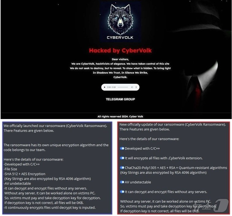 SK쉴더스의 화이트해커그룹 EQST(이큐스트)에 따르면 '사이버폴크'(CyberVolk)라는 이름으로 알려진 해킹 조직은 올해 7월부터 텔레그램을 통해 '양자 저항 알고리즘'을 적용한 렌섬웨어를 1000달러(약 140만 원)에 판매