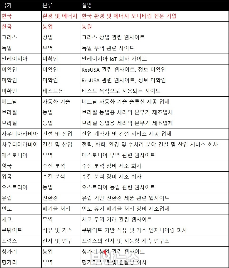 해커 조직은 트위터와 같은 SNS를 통해 주로 산업 제어 시스템(ICS)과 운영 기술(OT) 환경, 에너지, 수질 관리 시스템 등 대체로 SCADA 시스템 공격