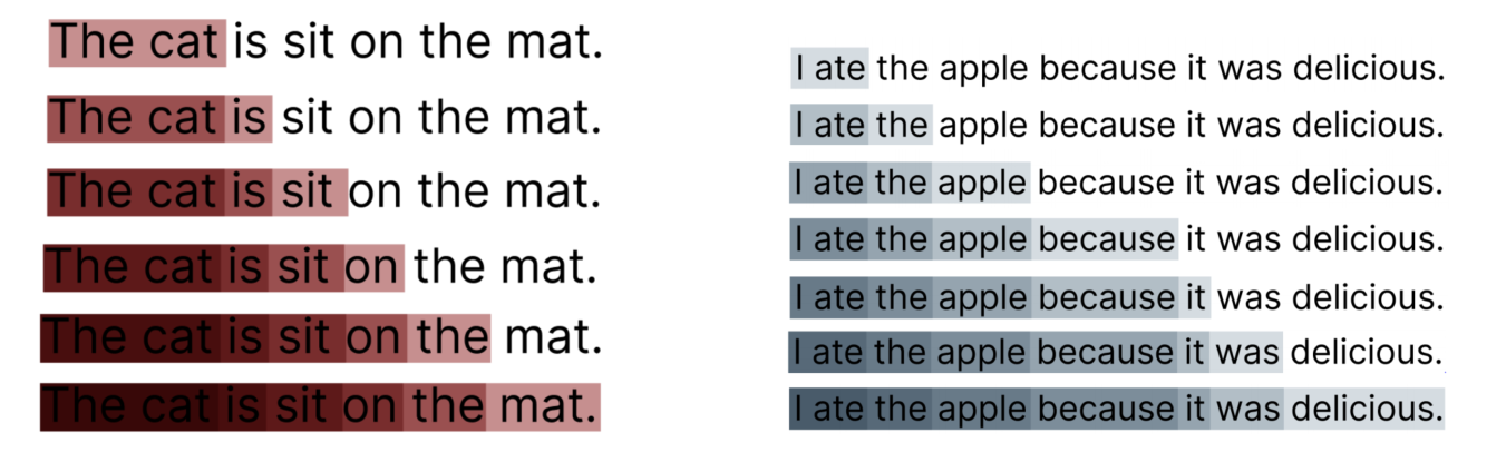 • The cat is sit on the mat"라는 문장에 대해 학습된 경우 "The"라는 단어를 처리하는 것으로 시작하여 "cat", "is", "sitting",