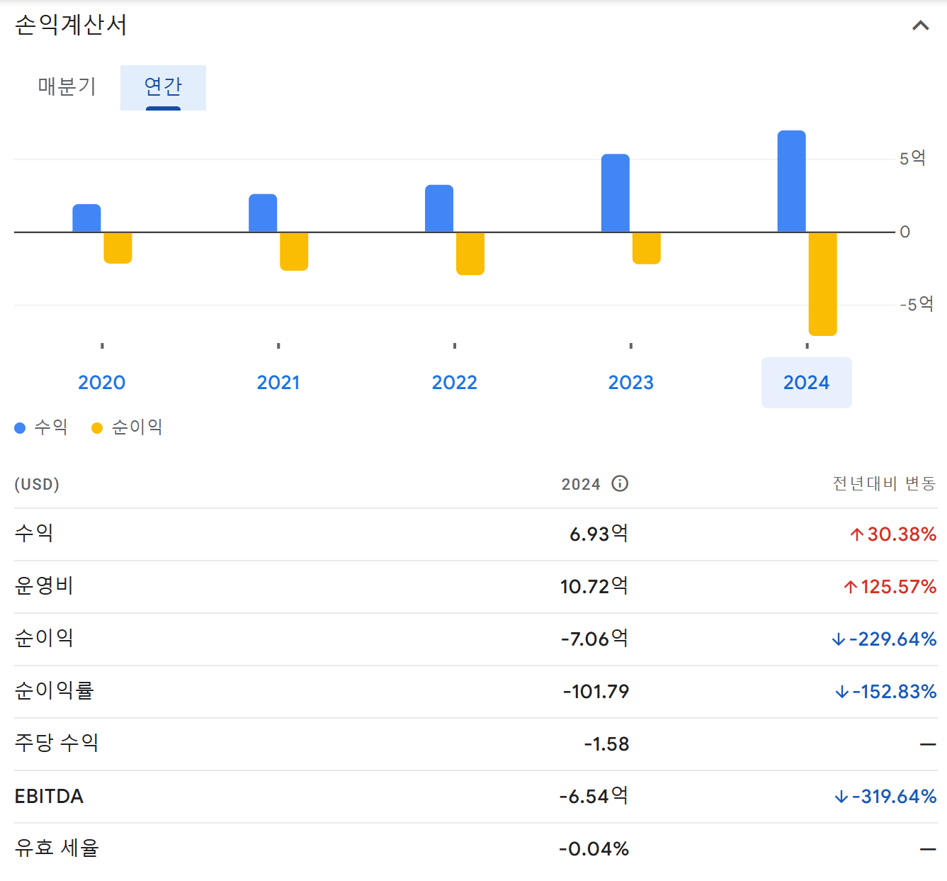 • 높은 운영 비용으로 인한 지속적인 적자 발생​