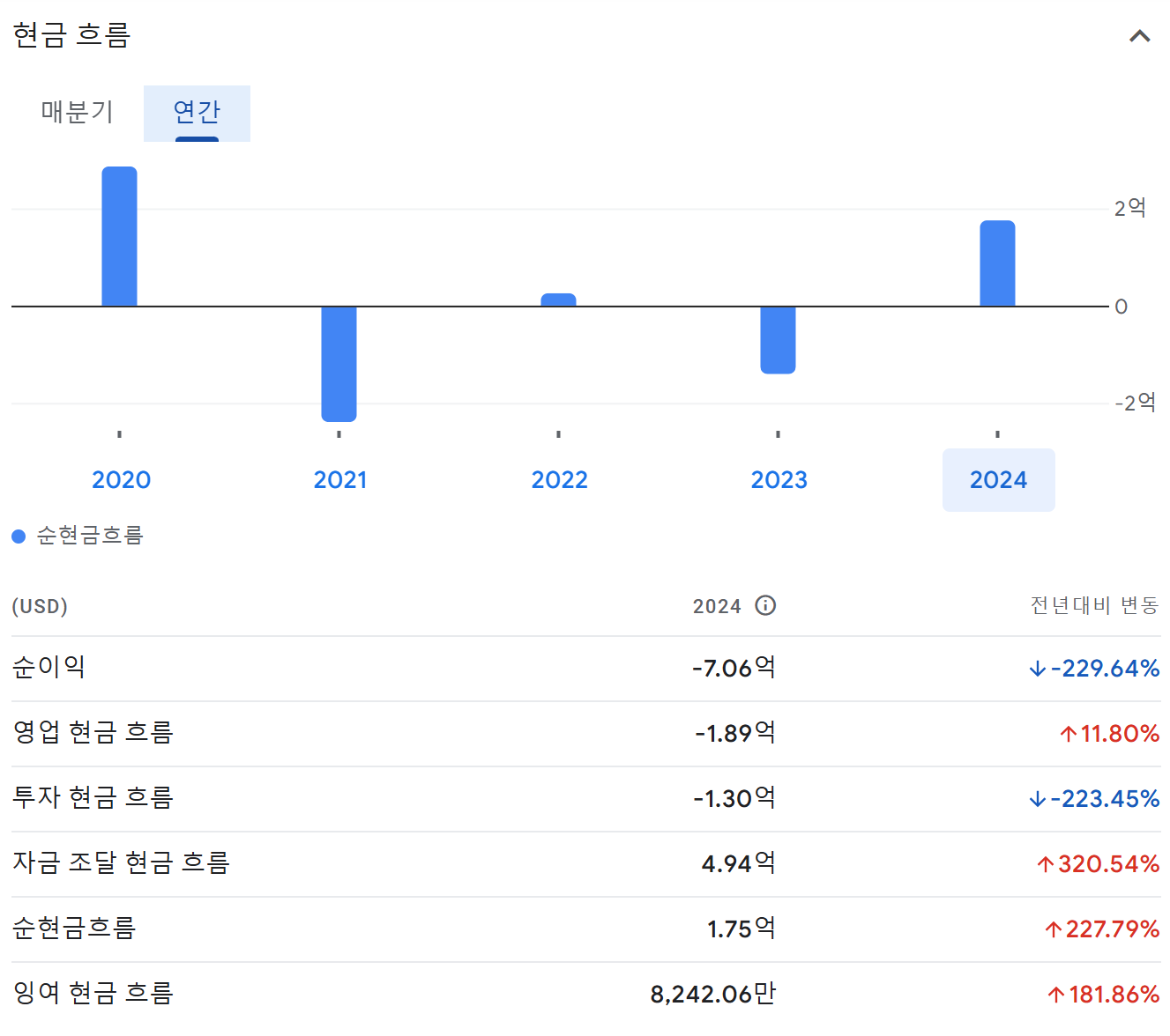 손익계산서 : 매출액이 지속적으로 증가하고 분기 기준으 이익의 마이너스가 계속 줄어들고 있은 점은 긍정적임