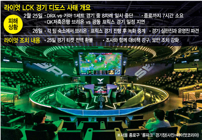 - 지난 25일 리그오브레전드(롤, LOL) 프로리그에서 ‘LOL 챔피언스 코리아’ 공식 경기 도중 디도스 공격을 받아 8차례나 게임을 일시 중단