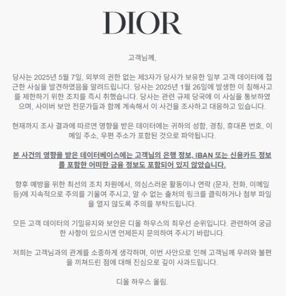 - 이번 사건은 LVMH(루이비통모에헤네시) 그룹 산하 브랜드인 디올(Dior)에 이어 발생한 두 번째 개인정보 유출 사고