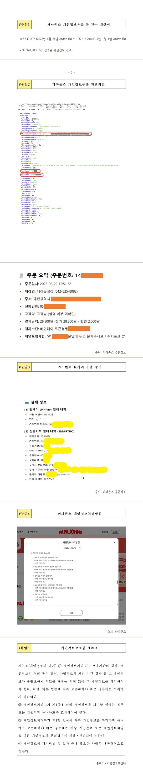 - 제보자는 이미 6월 21일 20시경 KISA 개인정보침해센터에 이 사실을 신고하고, 6월 23일 11시경에는 파파존스 고객센터에도 동일 내용을 접수