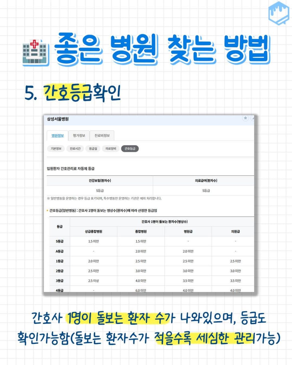 - 간호사 1명당 돌보는 환자수