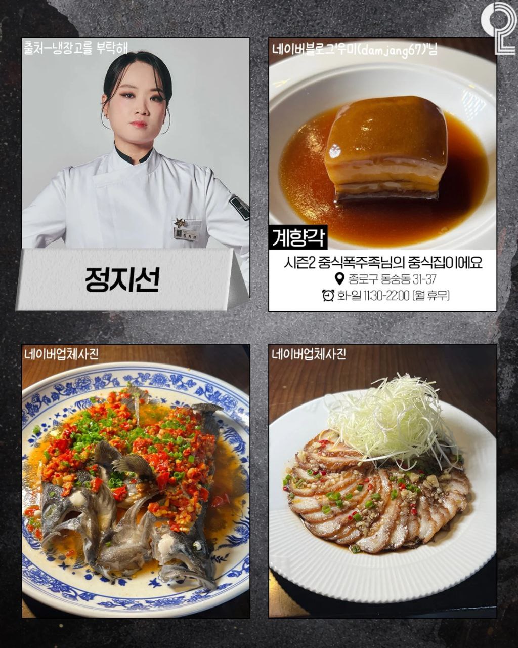 | 정지선 | 계향각 | 서울 종로구 동숭동 31-37 | 중식 |