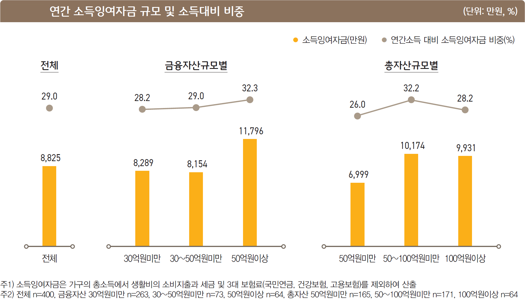 부자가구의 ‘소득잉여자금’은 연 평균 8,825만 원으로 월 700만 원 이상을 저축할 수 있는 규모이다.