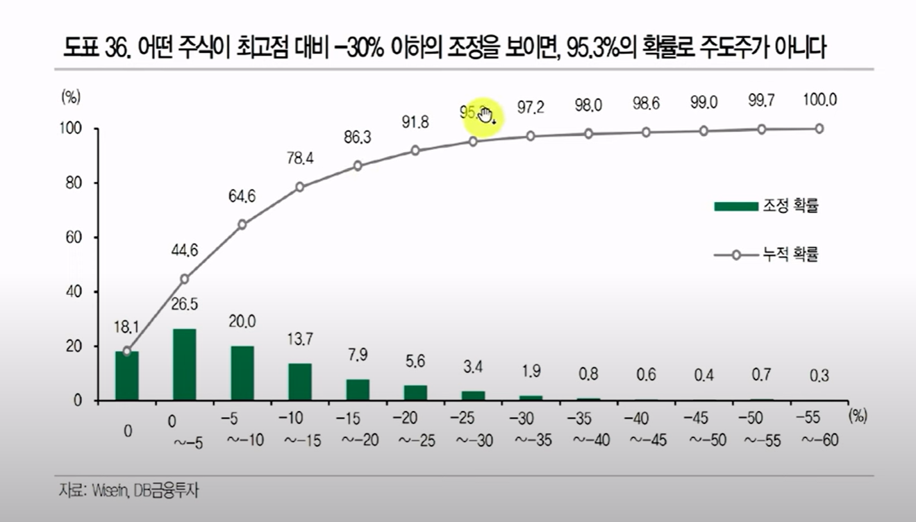 - 최고점 대비 30% 이상 빠지면 주도주 탈락 (95% 이상)