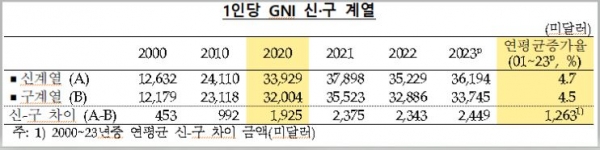 최근 경제 기사를 보면 갸우뚱하는 내용이 있다. 일인당 국민소득이 2023년 기준으로 이전 연도보다 올랐다는 것이다. 이 때는 3대 적자 (경상수지, 무역수지, 재정수지)로 IMF 이래로 가장 힘들었던 시기이다. 그런데 가만히 들어야 보면 여전히 2021년 보다 좋지 못하다. 단지, 통계 기준을 바꾸어 생긴 착시 현상이다.