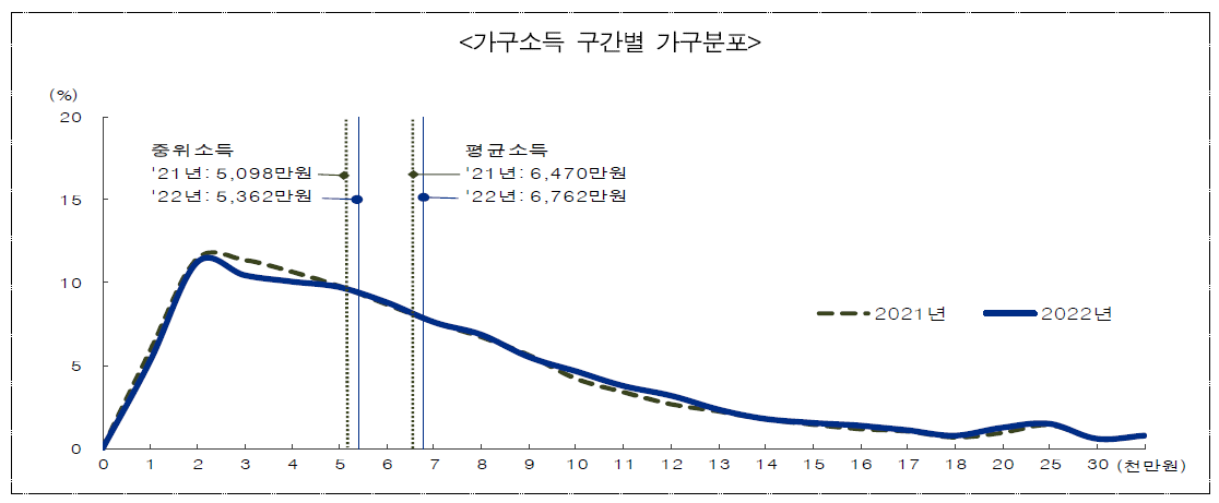 아래 그래프를 보면 중위 소득은 평균 소득 대비 작다.