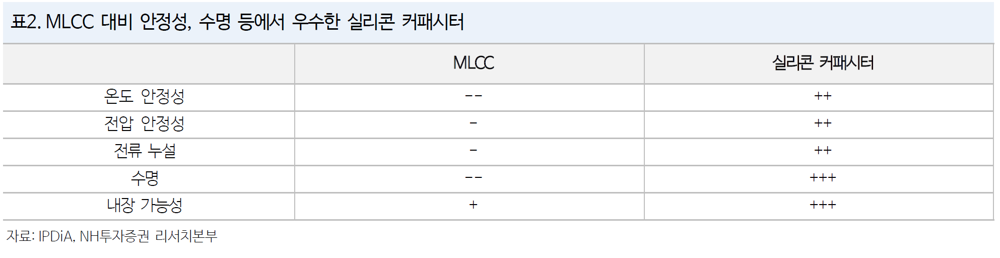 - 2024년 말부터 양산 예정인 실리콘 커패시터도 발열 감소, 전력 소비량을 크게 줄여줄 수 있는 핵심 수동부품으로 자리매김 전망