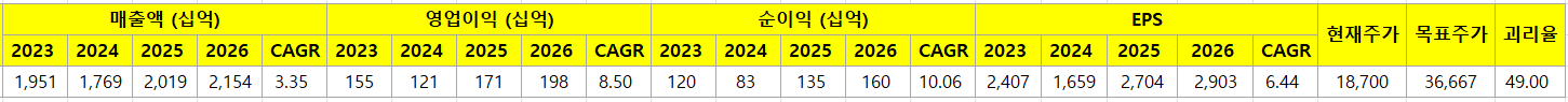24년은 23년 대비 영업이익 60% 수준, 25년 회복. 장기 보유자를 위한 종목