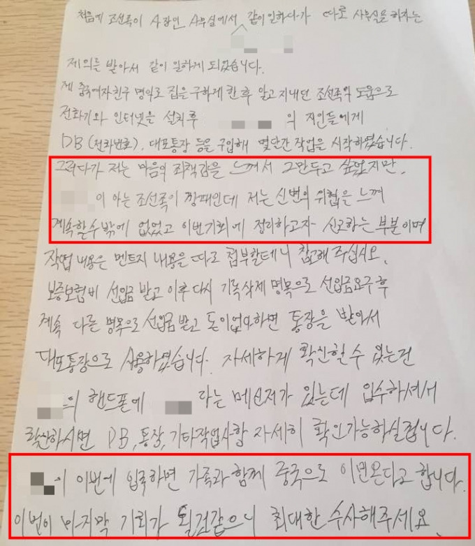 국정원: 30대 수금책, 인상착의는 파란색 상의에 검정 바지, 피해 금액 5,000만원