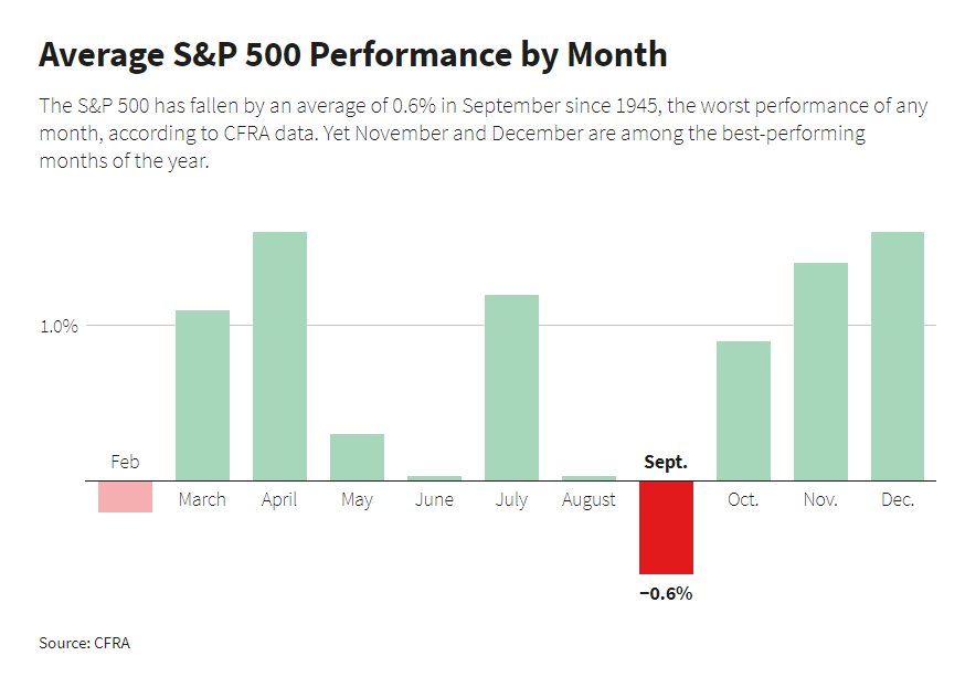 9월과 10월은 S&P 기준 성과가 가장 좋지 않은 달