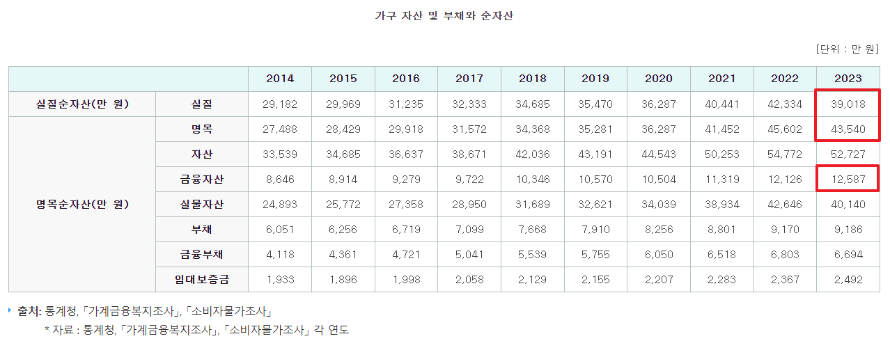 참고로 가구 기준으로 자산 2억 4천이 중간값이고 금융자산 1억 2천을 가지고 있으면 평균이다.