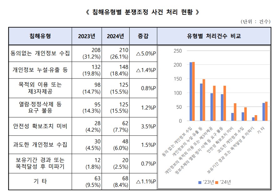 2024년 개인정보 분쟁조정 806건 전년비 21% 상승