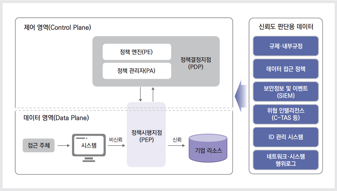 - 사용자와 기기의 신뢰도를 평가하여 접근을 허용하거나 제한