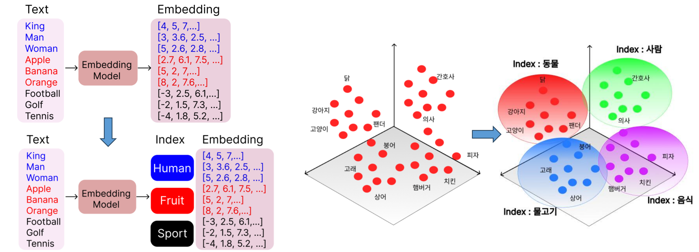 - 기존의 임베딩만으로 저장하는 방법은 느림 따라서 index를 부여해 사용함