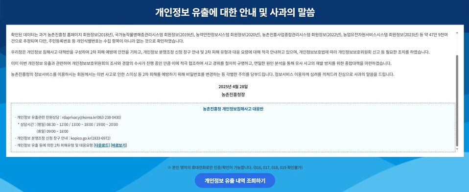 2025.5.13 농촌진흥청 47만건 개인정보 유출