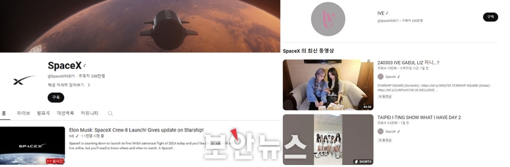 - 유튜브 채널명과 프로필 이미지 모두 ‘SpaceX(스페이스 엑스)’로 강제 변경
