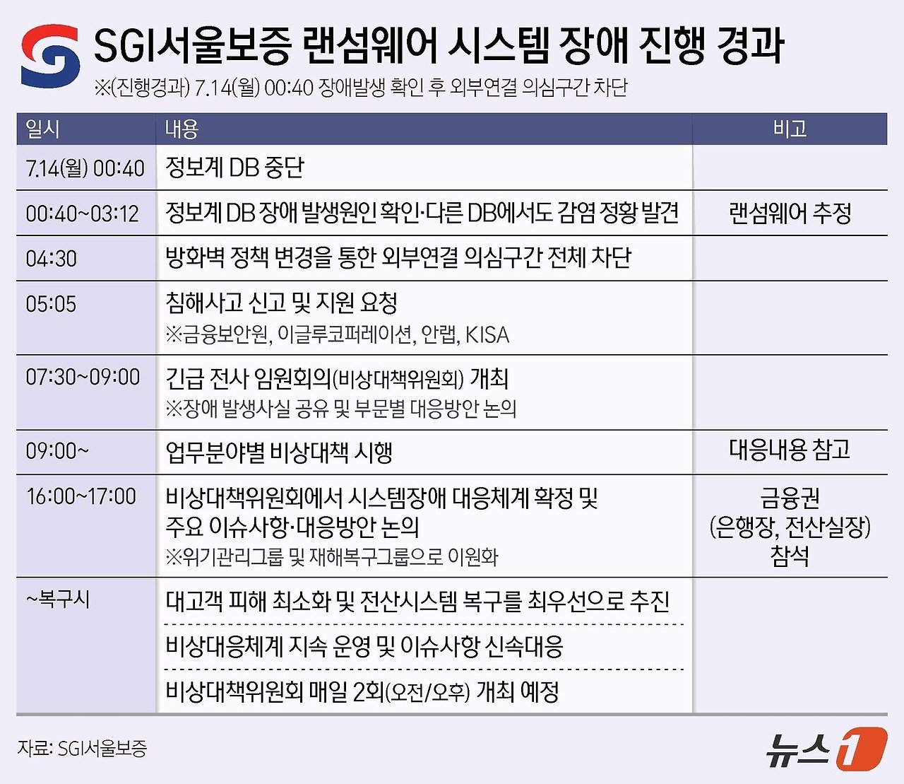 - 이후 매일 비상대책위원회를 구성해 피해 최소화 및 시스템 복구에 집중 중.