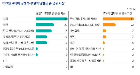 아래 2022년 슈퍼리치의 자산에 영향을 준 요소 설문 결과에도 반영되었듯이 국내 주식 시장이 2021~2022년 하락하면서 자산 구성이 안전자산으로 이동된 것을 알 수 있다.