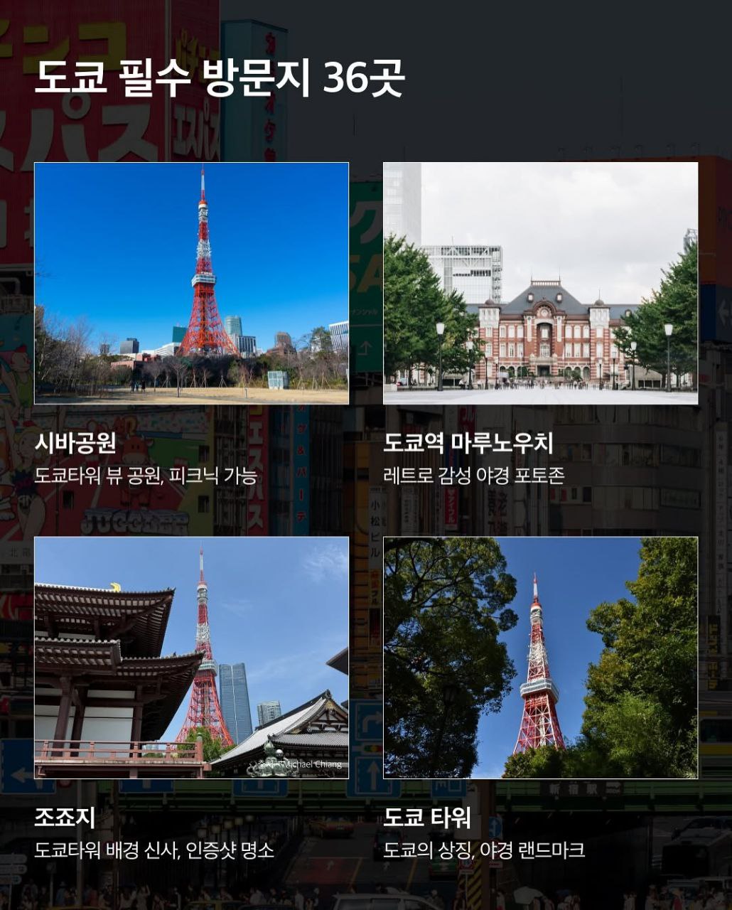 | 도쿄 타워 | 도쿄의 상징이자 야경 랜드마크입니다. | 도쿄 타워 | |