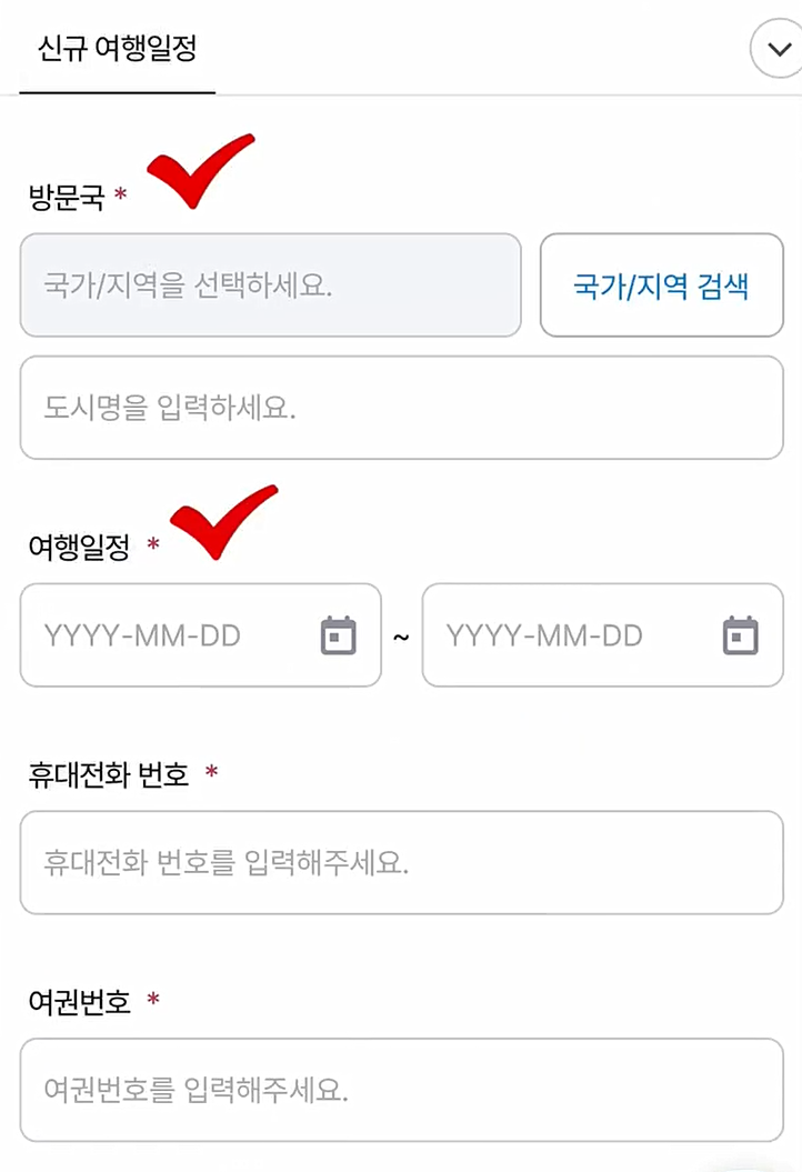 '해외안전여행' 앱을 통한 여행 정보 등록