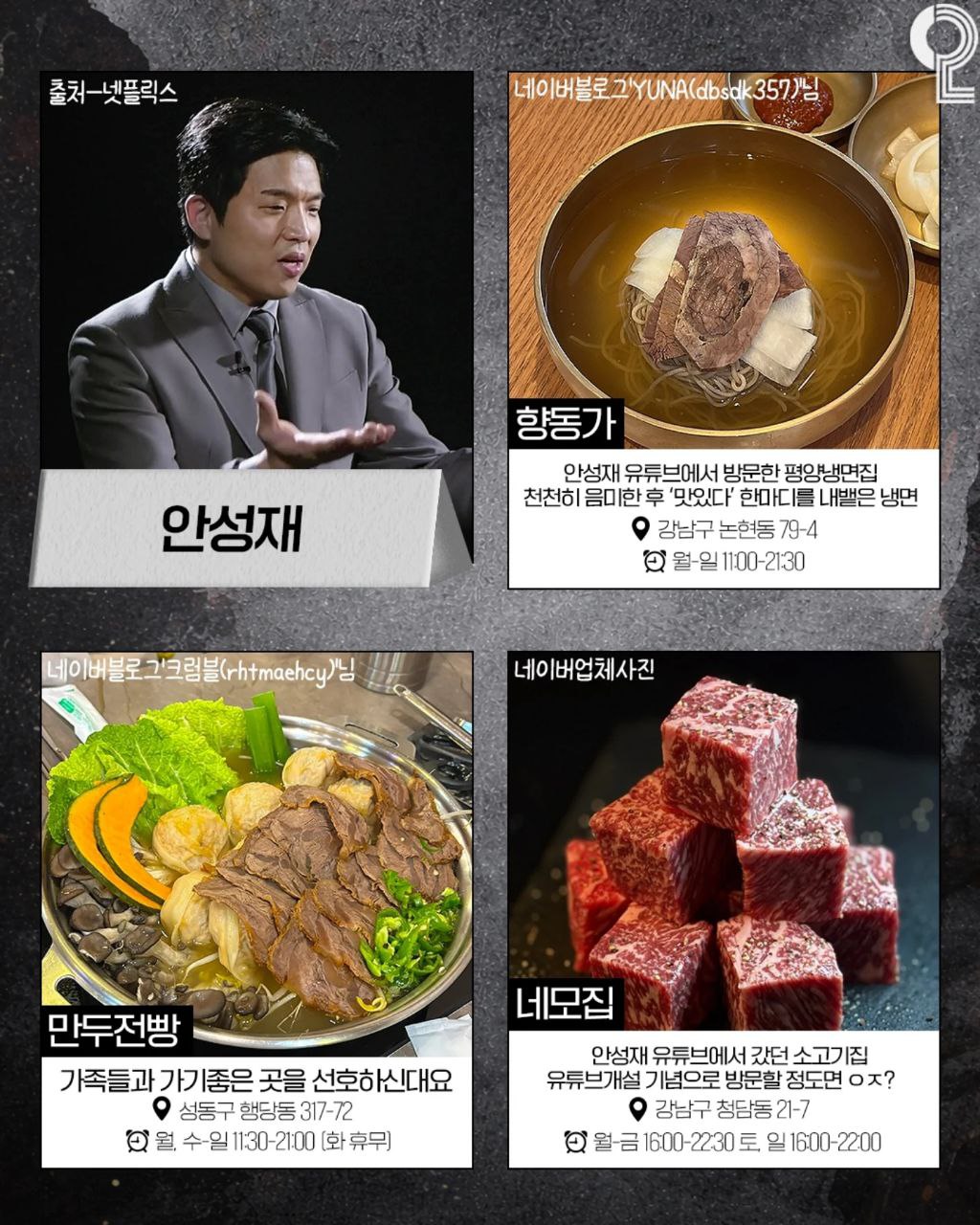| 안성재 | 향동가 | 서울 강남구 논현동 79-4 | 한식 (평양냉면) |